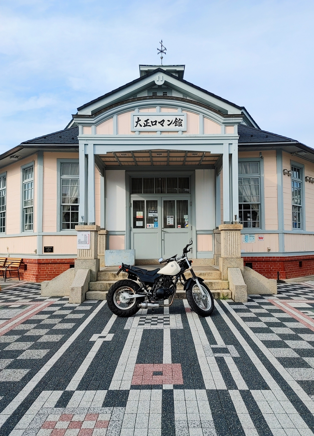 2023-07-05 【スナップショット121】大正ロマン♪ スナップショット ※当サイトはアフィリエイト広告を利用しています。 篠山市役所の近くにある『大正ロマン館』。 休館日の夕方なので人はほとんどおらず気兼ねなく写真を撮ることができた! レトロな雰囲気とTW225は相性がいいと改めて確認!