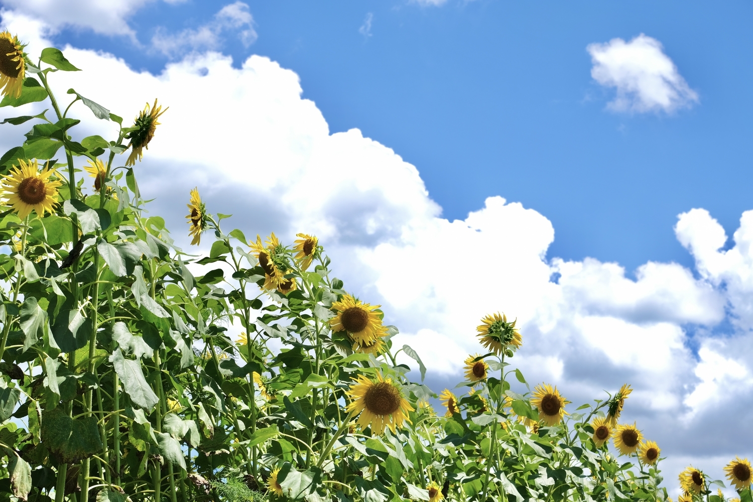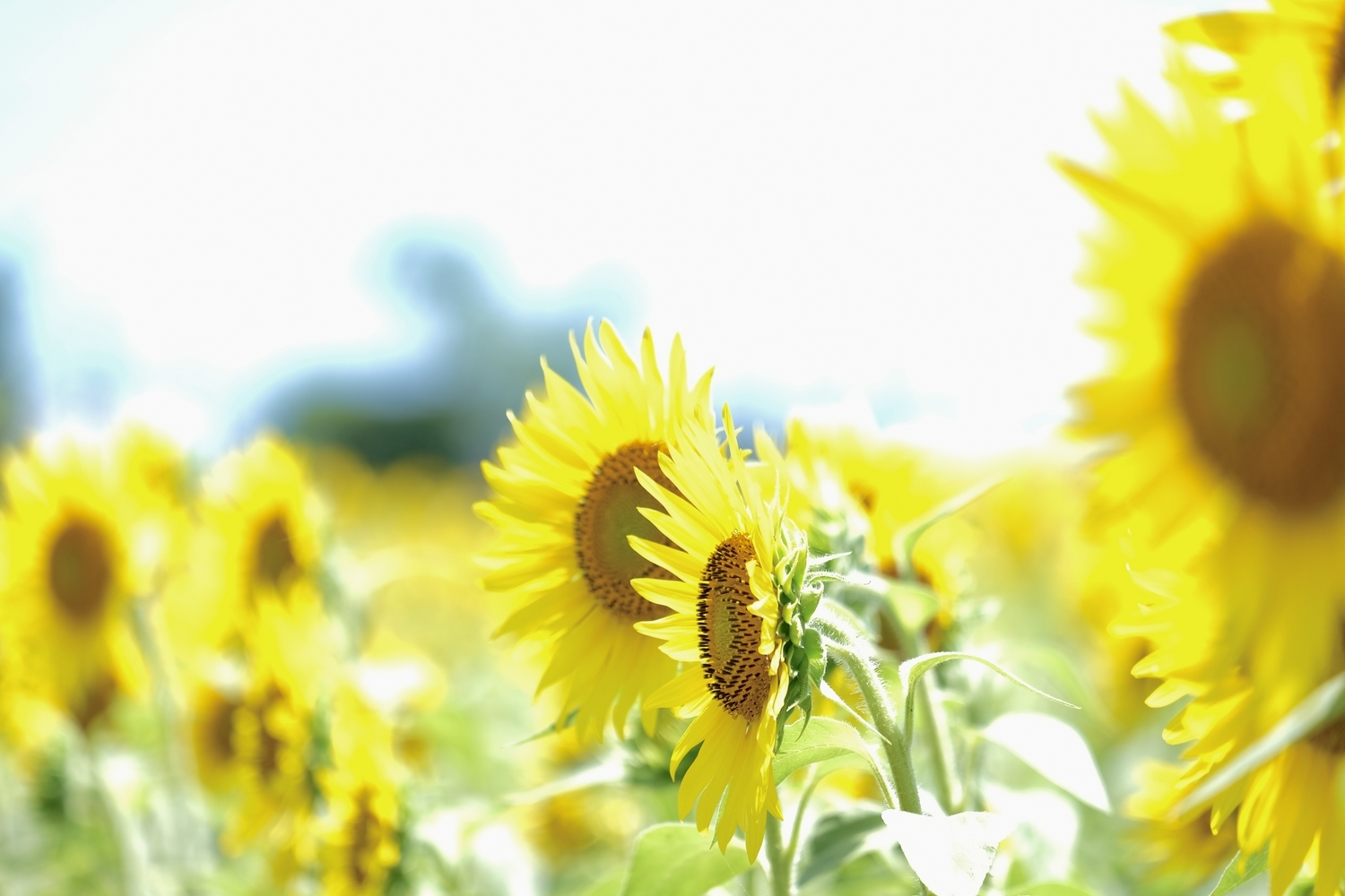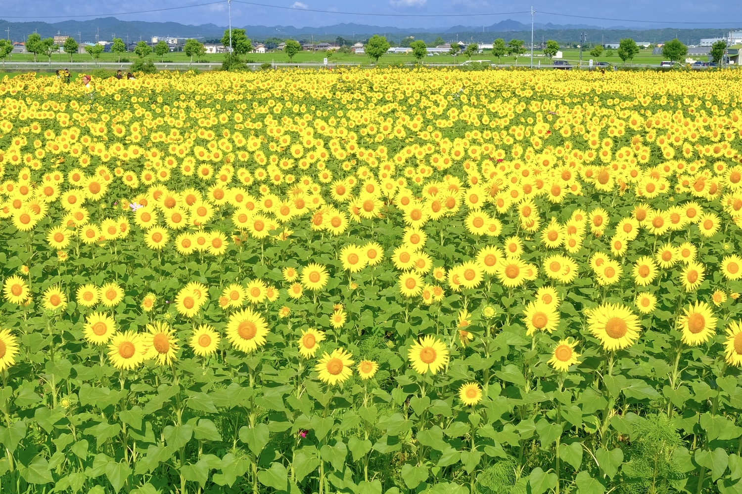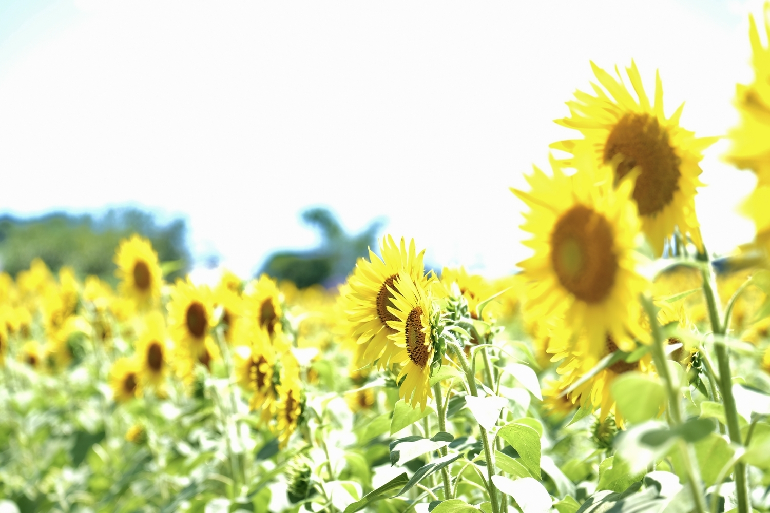 圧縮効果で画角にたくさんのひまわりを収めることができた!