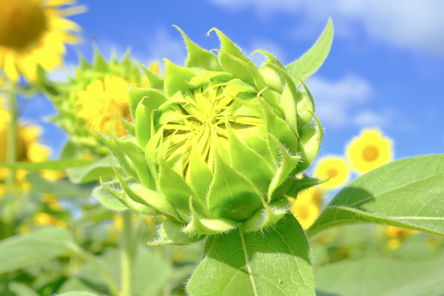 咲いてるひまわりに目が行きがちですが、蕾にもフォーカスを当ててみると結構楽しいですよ!