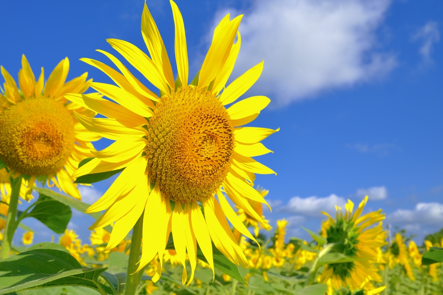 「ひまわりの丘公園」は夏に40万本のひまわりが、秋には400万本のコスモスが「花のじゅうたん」のように咲き誇ります。